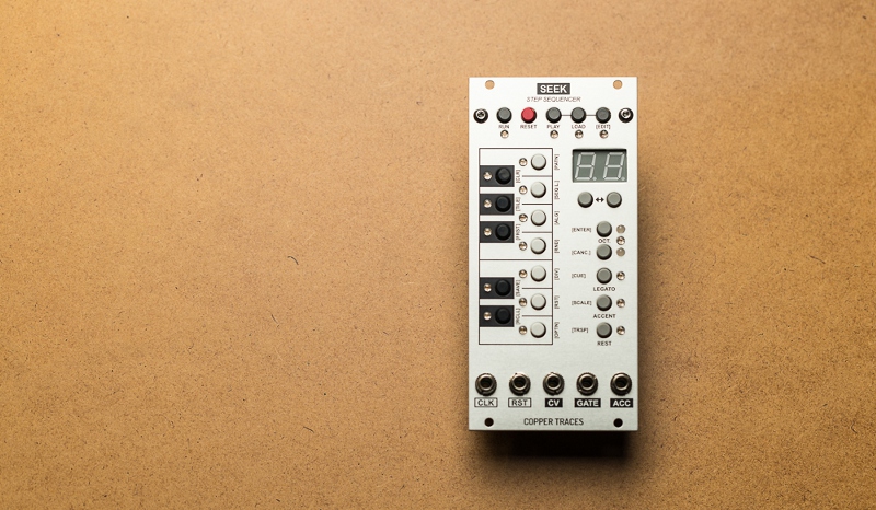 SEEK is a 64 step CV/gate sequencer with legato and an accent output. The easy to use yet compact interface allows for quick sequencing of complex, carefully crafted melodies. The multipurpose reset input, multiple pattern options and algorithmically controlled randomness make it perfect for completely or partially generative patterns.